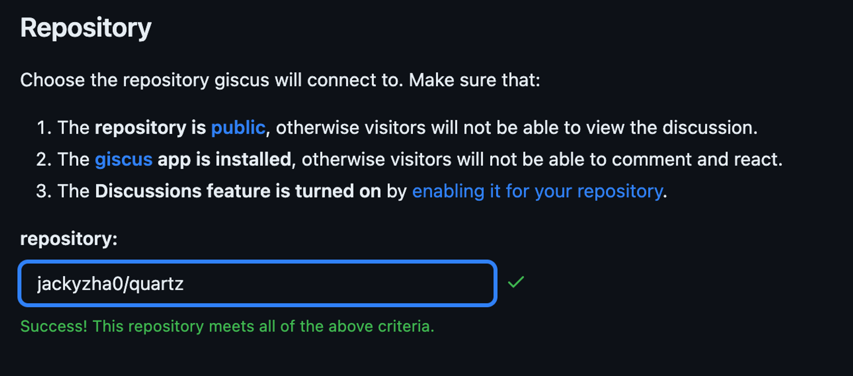 - The giscus app is installed, otherwise visitors will not be able to comment and react.